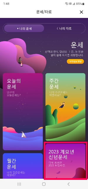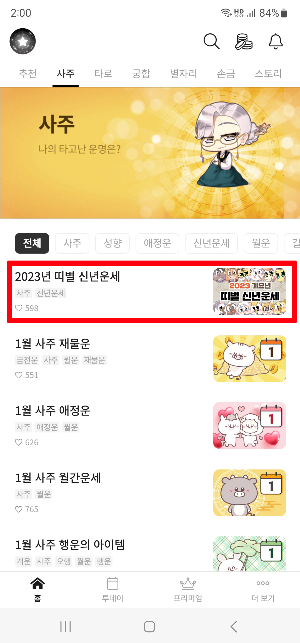 포스텔러 앱 실행 > 사주 > 2023 띠별 신년운세