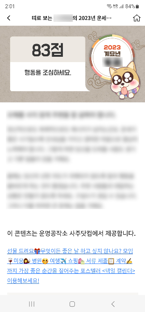간략한 운세만 제공되고 자세한 운세를 보려면 과금이 되는 구조입니다.
